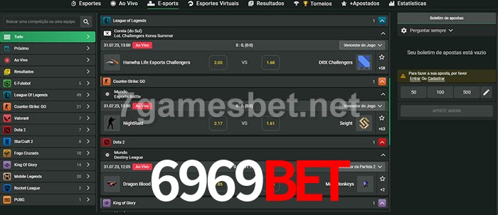 O 6969Bet oferece uma grande seleção de opções de apostas em e-sports com probabilidades competitivas